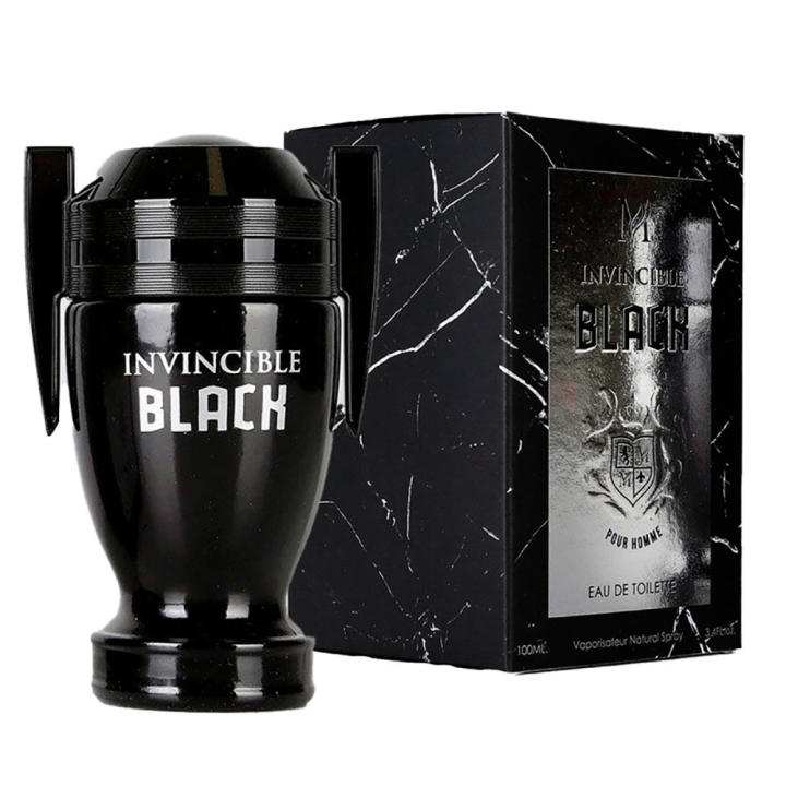 Invincible Black Pour Homme es una fragancia masculina con un carácter profundo, magnético y poderoso. Diseñada para hombres que combinan sofisticación y seguridad, esta versión nocturna del clásico Invincible se presenta en un frasco trofeo completamente negro, símbolo de poder y elegancia absoluta.
