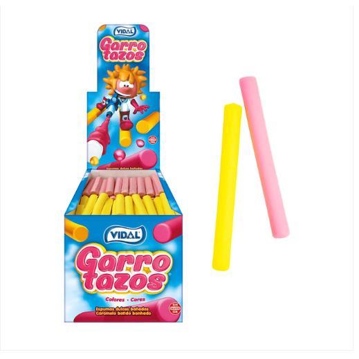 Nubes alargadas con una especial cobertura crujiente sabor fresa y vainilla. Su inigualable textura y sabor harán que disfrutes de esta chuche creada originalmente por Vidal Golosinas una y otra vez y sea una imprescindible en tu Candy Bar.