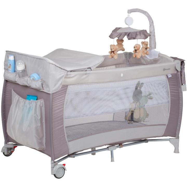 Com o berço de brincar e de viagem babyGO Sleeper Deluxe, pode oferecer ao seu filho um lugar confortável e atraente para brincar e dormir em casa ou em viagem. Dependendo da idade e das necessidades da criança, os colchões podem ser colocados no nível inferior ou superior: O nível superior é um bom local para mudar as fraldas aos mais pequenos, enquanto o nível inferior é agradável para as crianças um pouco mais velhas se sentarem, brincarem e dormirem. O telemóvel com música colorida proporciona um entretenimento alegre. Os dois colchões estão incluídos. As rodas na parte inferior da cama garantem que a cama de brincar e de viagem Sleeper Deluxe pode ser facilmente deslocada pelo quarto. O travão de estacionamento garante uma posição segura.