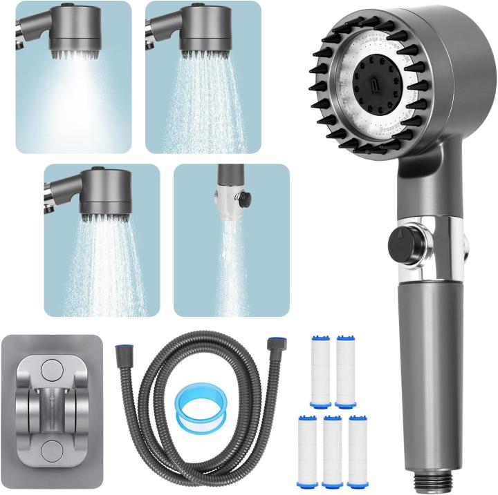 【Contenido del paquete】1 x mano de ducha (con filtro de ducha integrado), 1 x manguera de ducha de acero inoxidable de 1,5 m (tamaño estándar, instalación fácil sin herramientas), 5 x filtros intercambiables, 1 x soporte de ducha, 1 x disco de goma, 1 x manual. Si por alguna razón no estás satisfecho con nuestro cabezal de ducha, por favor contáctanos directamente. Te ofreceremos una solución satisfactoria dentro de las 24 horas.