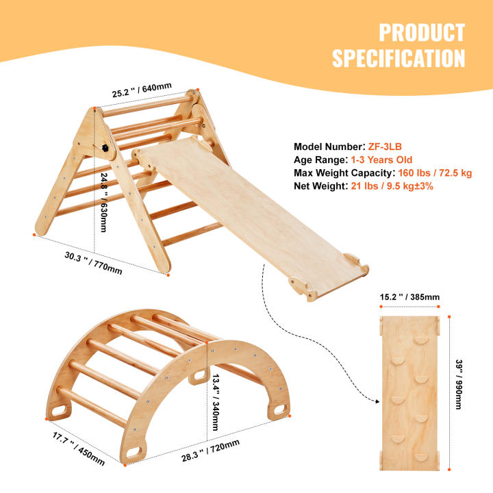Materiales de primera calidad para una mayor durabilidad: elaborado con madera de pino de alta calidad, este juego triangular Pikler está diseñado para durar.Las barras de escalada están hechas de madera maciza y gruesa que no se dobla ni se rompe bajo presión, lo que garantiza que su hijo pueda jugar de forma segura.Puede admitir que varios niños jueguen al mismo tiempo.