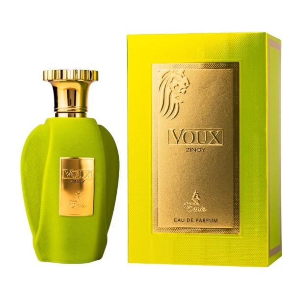 Emir Voux Zingy se despliega en capas cautivadoras: comienza con una explosión cítrica revitalizante, seguida de un corazón cálido y floral que envuelve los sentidos con dulzura oriental, y finalmente se asienta en una base intensa de madera y ámbar, dejando una huella memorable y magnética durante todo el día.