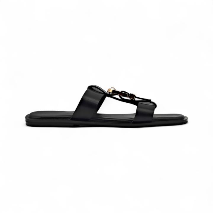 Calzados soraia, Sandalias Planas de Mujer con Punta Cuadrada, Diseño Elegante con Hebilla Decorativa, Estilo Minimalista y Sofisticado, Calzado Abierto para Verano, Ideal para Eventos, Paseos o Uso Diario Playa Metal Lazo Playa