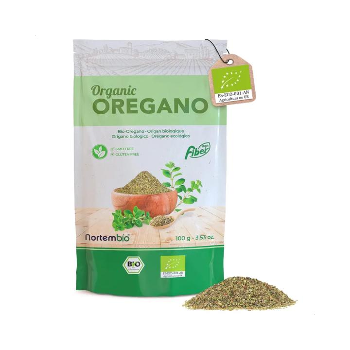 NORTEMBIO Orégano Seco combina certificación ecológica y origen 100% natural con un aroma intenso y fresco. Rico en vitaminas A, C, E y K y con aporte de zinc y potasio, es un imprescindible de la dieta mediterránea: realza pizzas, pastas, arroces, salsas y aliños, así como carnes, pescados y verduras. Sin gluten, sin lactosa, sin azúcar y sin alérgenos; sin aditivos, sin conservantes ni saborizantes, sin OGM y apto para veganos. Llega en doypack con cierre zip que preserva sus propiedades, fabricado en polietileno alimentario 100% reciclable y libre de BPA.