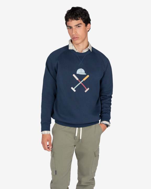 Sudadera básica de cuello redondo confeccionada en mezcla de algodón, con acabados acanalados en bajo, puños y cuello. El diseño presenta el logo bordado central, con una composición limpia y equilibrada.