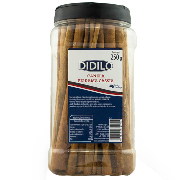 Canela en Rama  DIDILO  Cassia  Bote Pet Transparente de 250 gr. Especias - details 0