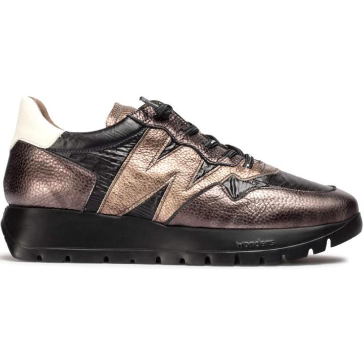 Las Deportivas Odisei?91 en combinación negro y oro destacan por una estética refinada y actual, con una mezcla de piel vacuna negra y nylon que otorga un aire moderno. La emblemática "W" en piel metalizada color oro aporta un toque llamativo y distintivo en los laterales haciendo de este modelo una pieza con carácter. La armonía entre tonos oscuros y metalizados le confiere una apariencia versátil, perfecta para estilismos urbanos contemporáneos.