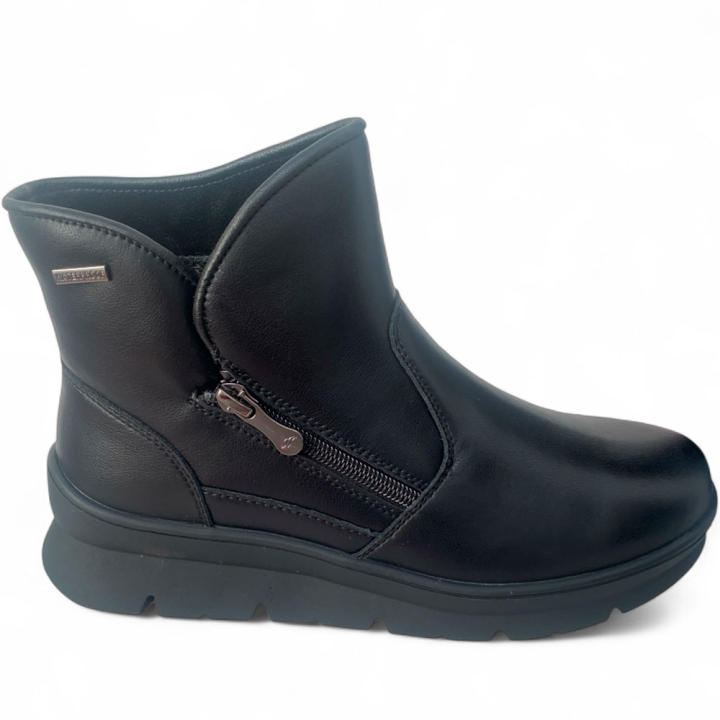 Botines con WaterProof Shoes impermeables y transpirables con membrana impremeable Tex sport , en color negro con cremallera, para facilitar su calce y descalce, ya que se adaptan correctamente a tus pies, y sobre todo, si son esos pies sufridos que no aguantan cualquier zapato.