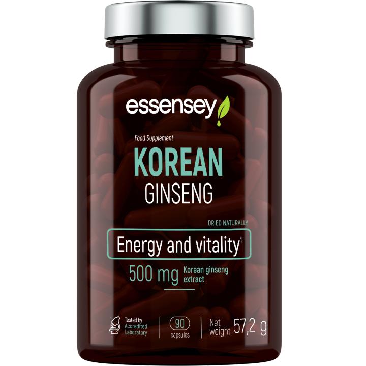 Essensey Ginseng Coreano es un complemento alimenticio en cápsulas vegetales que aporta 500 mg de extracto de raíz de Panax ginseng por dosis. Su contenido natural en ginsenósidos (≈ 10 %) lo convierte en una opción ideal para quienes desean integrar ingredientes vegetales tradicionales en su dieta diaria. Con 90 cápsulas por envase, es perfecto para un uso prolongado. Fabricado bajo estándares europeos de calidad, sin conservantes ni colorantes artificiales.