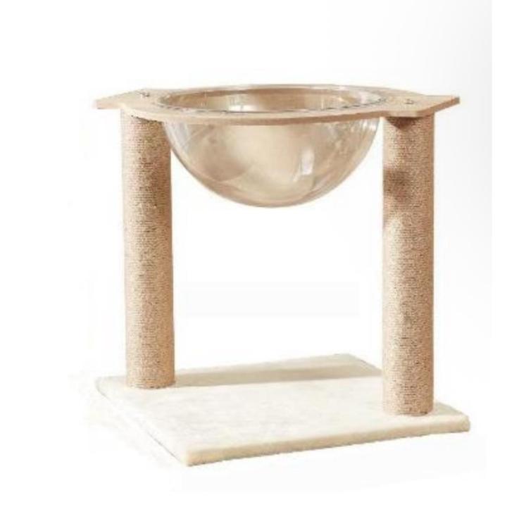 Dale a tu gato el espacio ideal para jugar, descansar y observar el mundo con este rascador de diseño moderno. Su estructura de madera con acabado natural aporta un toque elegante a tu hogar, mientras que la cama acrílica transparente permite a tu felino relajarse cómodamente y vigilar su entorno.