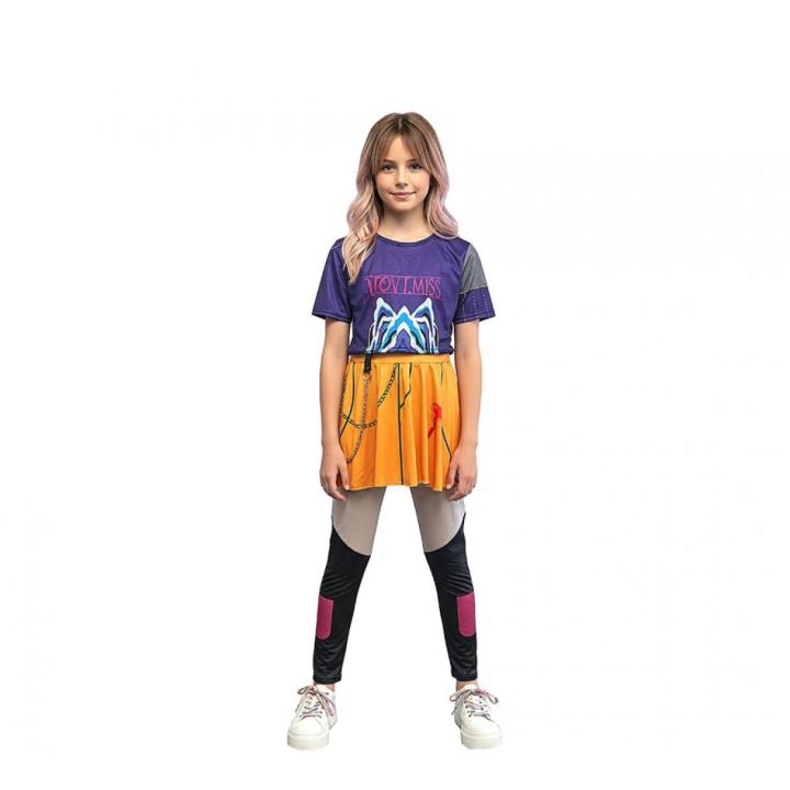 Disfraz de Cazadora Kpop Mira para niña. Incluye Camiseta, Falda con pantalón. No incluye resto de accesorios mostrados en la imagen.