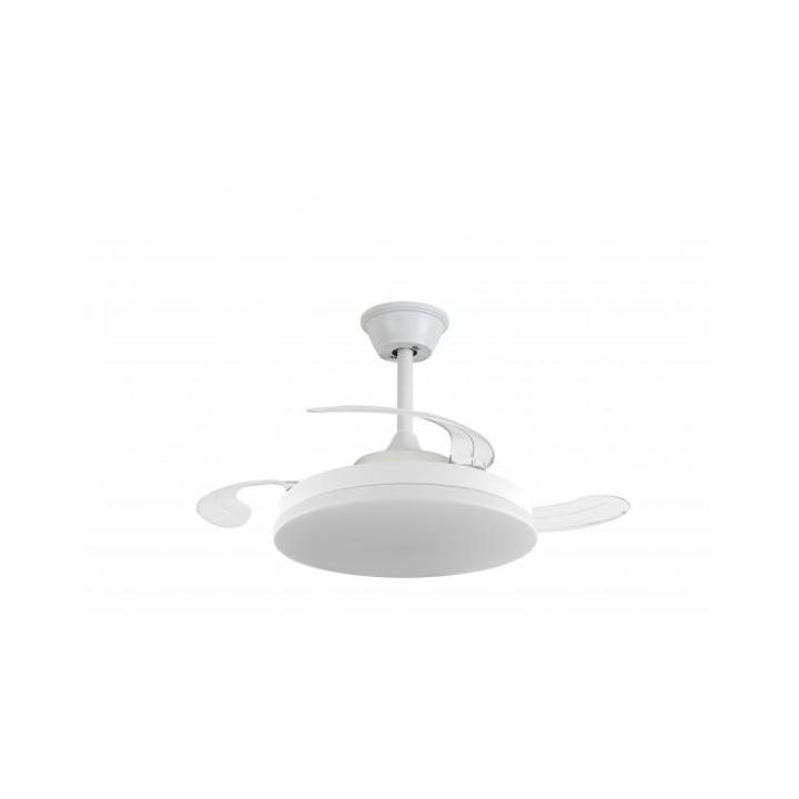 Te presentamos un ventilador de diseño moderno y funcional, ideal para cualquier espacio. Con un chasis de policarbonato color BLANCO, y palas transparentes retráctiles, ofrece ligereza pero una muy buena presencia, y un rendimiento eficiente con un motor DC de bajo consumo (<30W) y 253 RPM. Su fuente de luz LED de intensidad regulable (45W x 2) permite ajustar la temperatura de color (3000K-4200K-6500K), mientras que su memoria de color mantiene la luz constante.