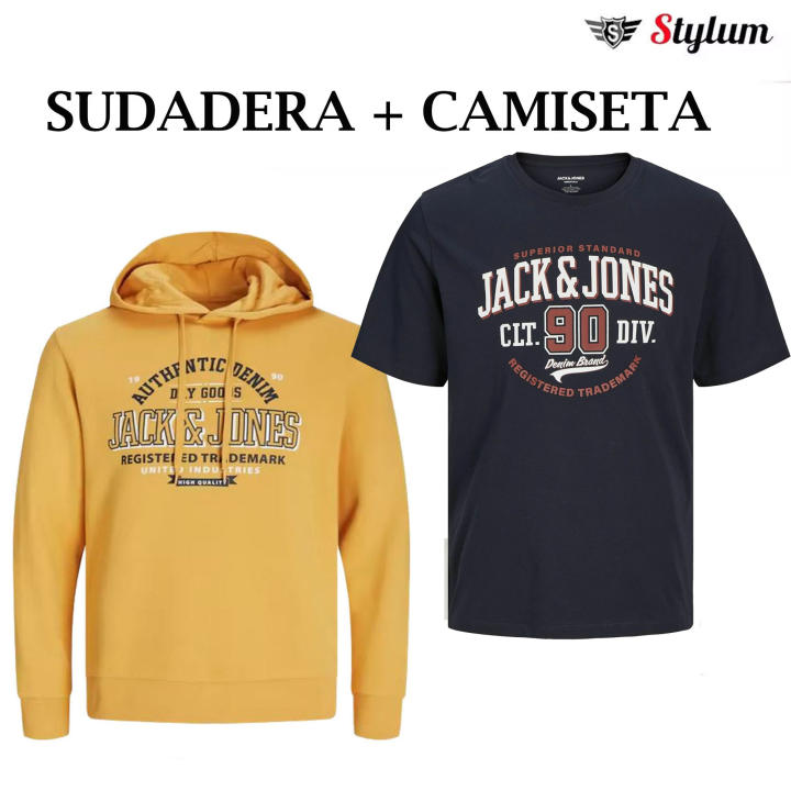 - Renueva tu estilo con este pack de sudadera y camiseta para hombre de Jack & Jones, diseñado para quienes buscan comodidad y moda casual en una sola compra.