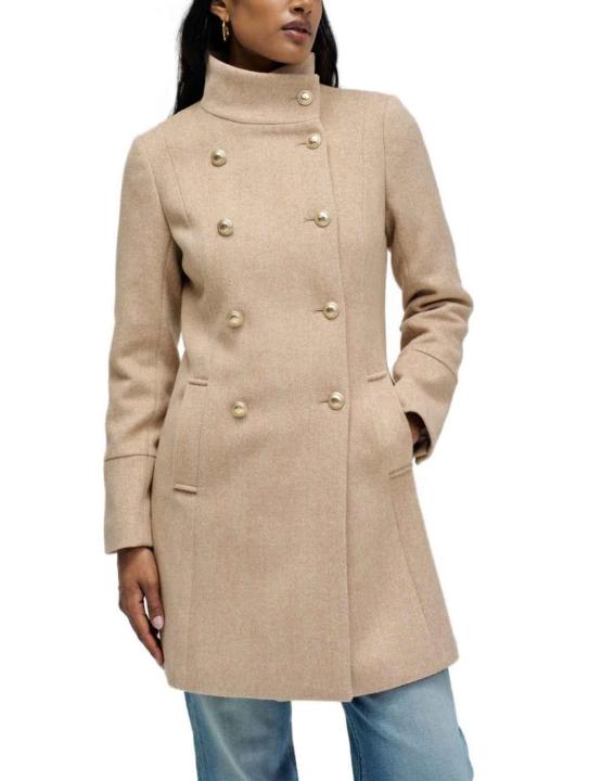 Abrigo Salsa beige botones dorados con lana para mujer