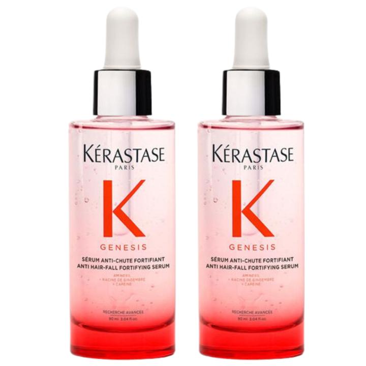 El Pack x2 Kérastase Sérum Anti-Chute Fortifiant 90ml es un tratamiento profesional que fortalece la fibra capilar, estimula el cuero cabelludo y reduce visiblemente la caída del cabello. Su fórmula combina Aminexil 1,5%, raíz de jengibre y cafeína, activos reconocidos por su acción fortificante y estimulante, que mejoran la resistencia del cabello desde la raíz.