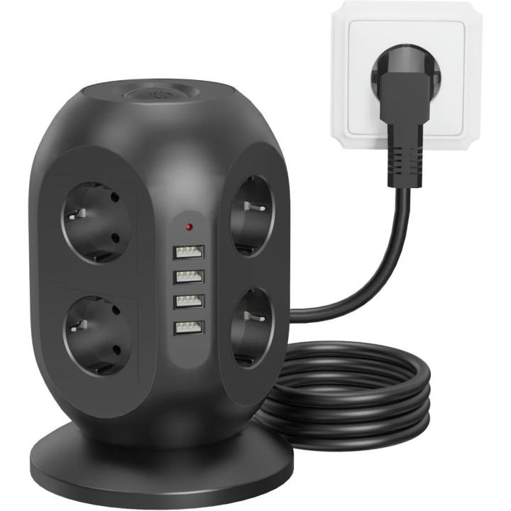 La regleta 12 en 1 combina potencia, seguridad y diseño compacto para ofrecer una solución completa de carga y conexión eléctrica. Equipada con 8 enchufes AC y 4 puertos USB-A (5 V/2 A), permite alimentar simultáneamente hasta 12 dispositivos con una potencia máxima de 2500 W/10 A, ideal para el uso diario en oficinas, hogares, cocinas o salas de estudio.