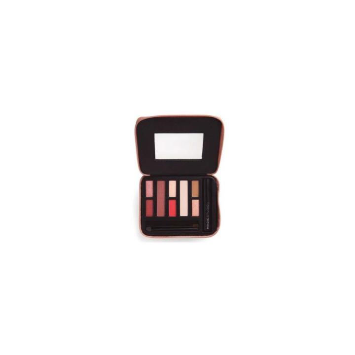 Estuche con cremallera que contiene 8 sombras de ojos, una máscara de pestañas y un espejo.