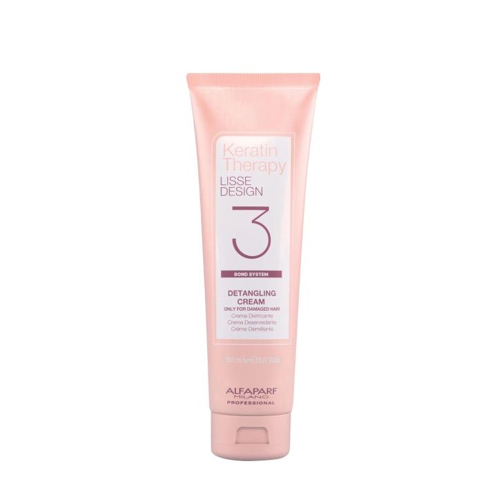 La crema desenredante Alfaparf Keratin Therapy Lisse Design Detangling Cream está diseñada para facilitar el cepillado y el alisado en cabellos tratados o muy dañados. Forma parte del protocolo técnico de alisado de la gama Lisse Design, ayudando a mantener el acabado liso, suave y sin encrespamiento.