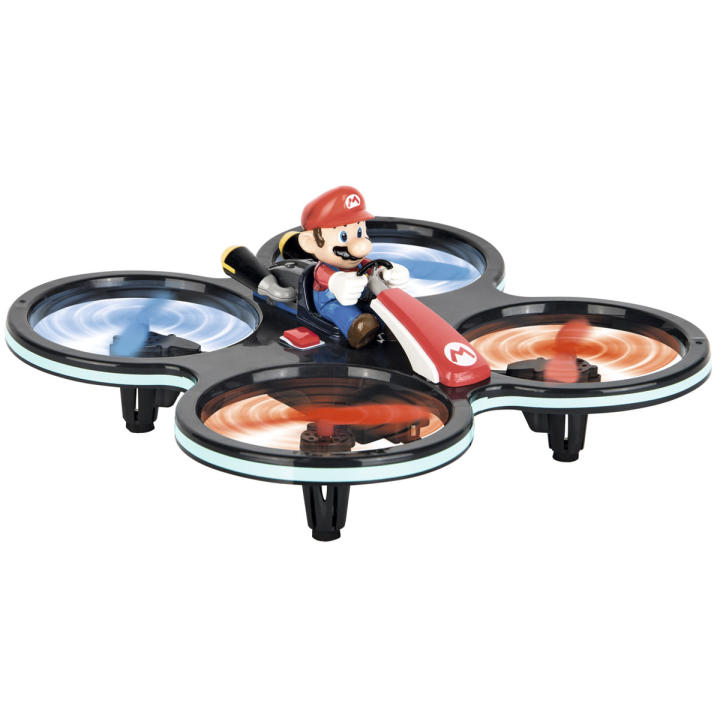 Mini-Copter Mario dron con frecuencia 2.4GHz y una autonomía 5 min puedes dirigirlo en todas direcciones con su mando radiocontrol tanto en interior como exterior. Batería de Li-Po 3,7V -430mAh.Se carga por USB y el mando funciona con 2 Pilas AA. Pilas no Incluidas.