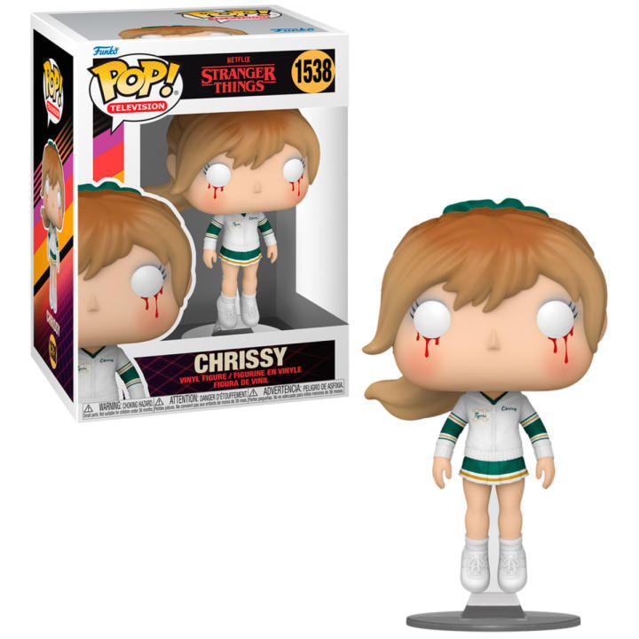 Figura fabricada en vinilo de la colección Funko POP con número 1538, inspirada en Chrissy, personaje de la serie sobrenatural Stranger Things.