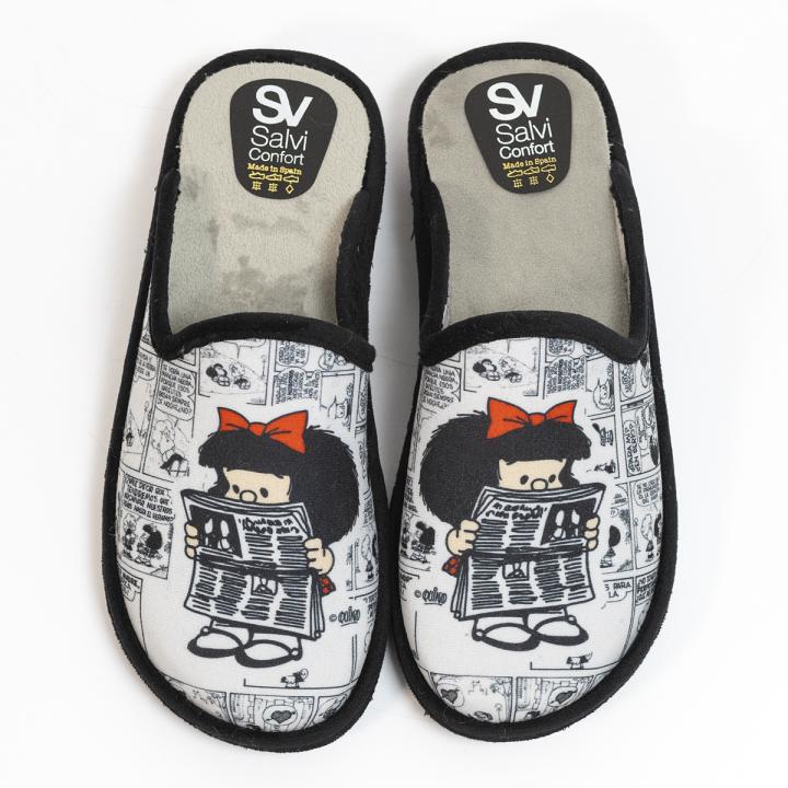 Zapatilla de casa para mujer modelo Mafalda 01T5960 de la marca española Salvi. La combinación ideal entre comodidad y calidad. Esta zapatilla está fabricada en tejido suave al tacto y forrada con un interior aterciopelado, por lo que ofrece una sensación única de calidez. La suela es antideslizante. Este modelo calza la talla habitual. Si estás entre dos números, te recomendamos elegir el más grande. Fabricado en España