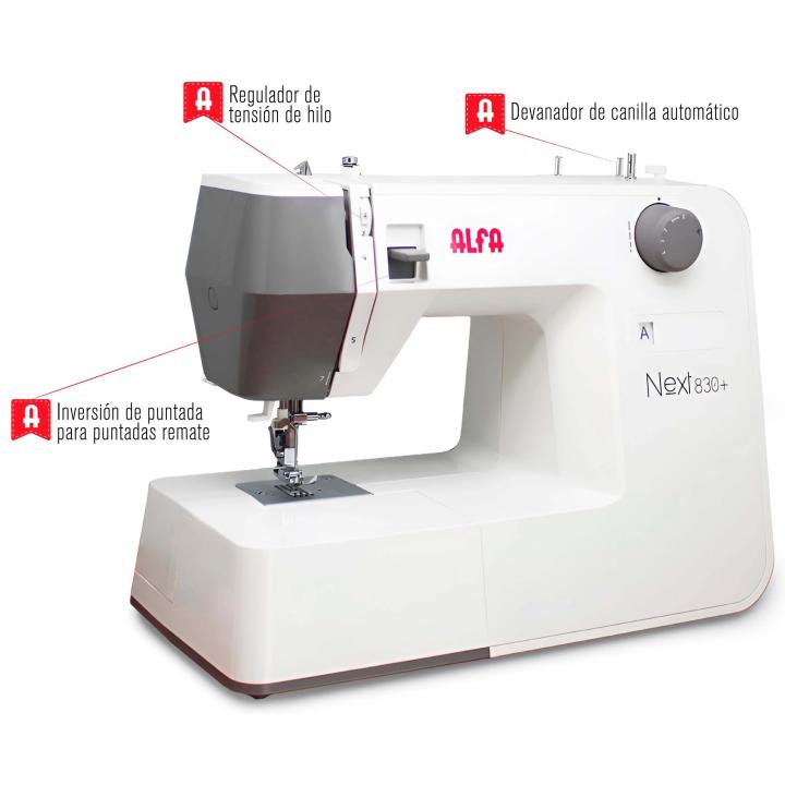 Pensada para quienes buscan rendimiento y sencillez, la Next 830 ofrece la fiabilidad característica de Alfa y una experiencia intuitiva que invita a crear. El conjunto de accesorios incluidos te permite empezar a coser al instante y explorar distintas técnicas, aprovechando la precisión de sus puntadas y la flexibilidad de sus opciones. Si buscas una máquina práctica, potente y lista para acompañar tus ideas, la Alfa Next 830 es la opción que une calidad, innovación y comodidad.