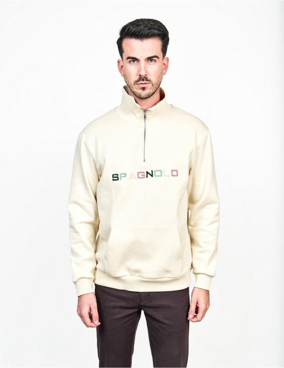 Apuesta por un estilo sin esfuerzo y una comodidad acogedora con la SUDADERA SPAGNOLO LETRAS MEDIA CREMALLERA COLOR BEIG. Esto no es solo una sudadera; es una pieza que marca la diferencia, diseñada para elevar tu look diario. Sabemos que buscas moda versátil, y esta sudadera beige ofrece precisamente eso.