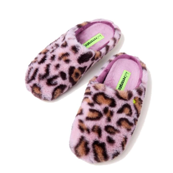Zapatilla de casa de señora modelo Audubon 76926, de la marca española Hot Potatoes, fabricada en estampado animal en color rosa. Disponen de plantilla de pelo, acolchada y extraíble. El forro es transpirable y la suela es flexible, con un 75% de caucho natural con virutas de EVA reciclada.