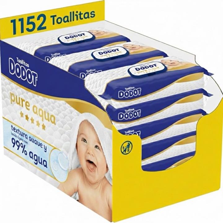 Dodot Toallitas Pure Aqua Para Bebé, 99% agua. Ayuda a restaurar el pH natural de la piel, 1152 Toallitas (24 Paquetes de 48 Toallitas).