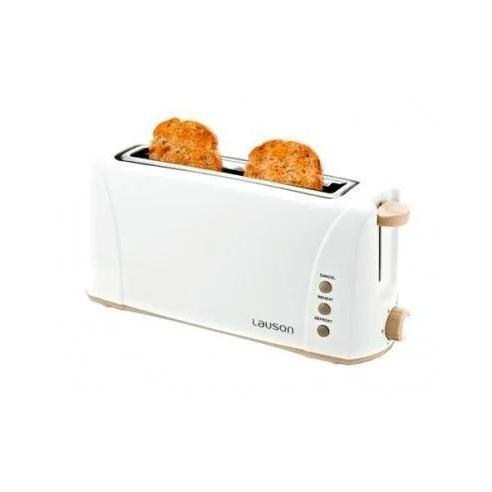 Tostador Lauson de 1 ranura larga en color blanco, diseñado para preparar una rebanada grande o dos tostadas de forma cómoda. Cuenta con 1000W de potencia y control variable de tostado, permitiendo ajustar el nivel según tus preferencias.