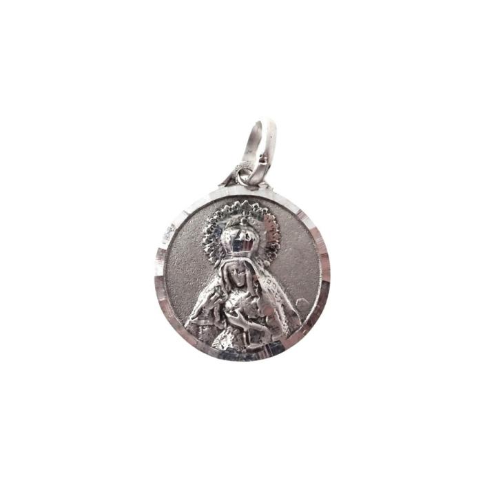 Cristo del Gran Poder Virgen Esperanza de Triana medalla escapulario plata Ley 925m maciza 18 mm. detalles realistas tallados bisel. . Espesor(mm): 0.7. Peso(gr): 2.4. Diámetro(mm): 18. Longitud asas(mm): 7.