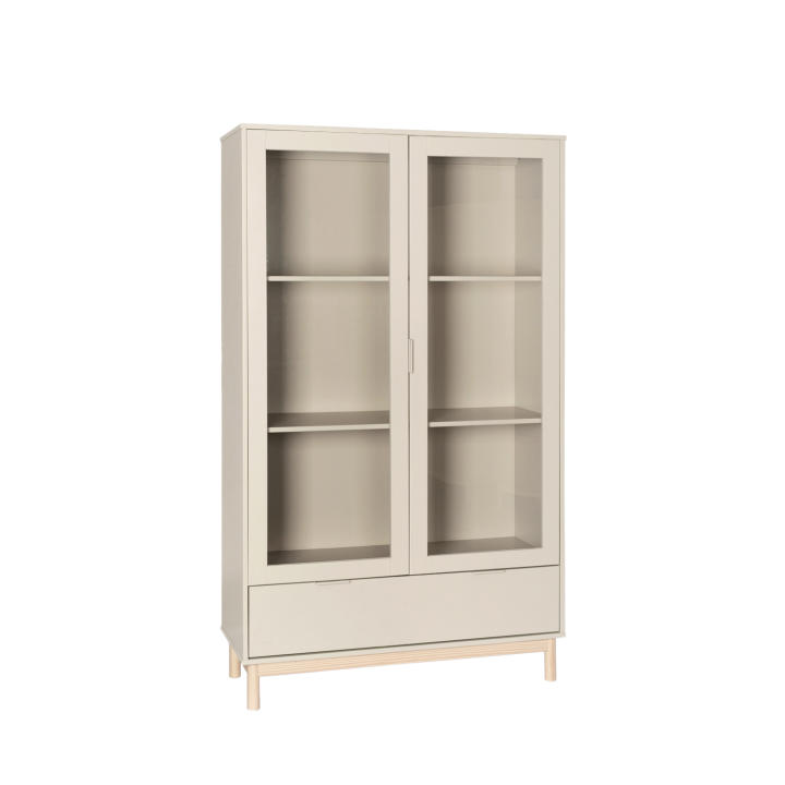 Completa la decoración de tu salón con la vitrina lacada en color gris perla Elian. Sus dos puertas acristaladas permiten exhibir y almacenar tu menaje del hogar mientras los protegen del polvo. Además, su cajón inferior proporciona un espacio adicional perfecto para guardar mantelería u otros textiles del hogar. Combínala con otros muebles de la colección y consigue un espacio armonioso y acogedor.