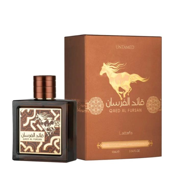 Lattafa Qaed Al Fursan Untamed Eau de Parfum es una fragancia masculina que encarna la fuerza, la elegancia y la libertad. Su apertura especiada de canela, cardamomo, nuez moscada y mandarina cautiva al instante, revelando un carácter intenso y refinado que no pasa desapercibido.