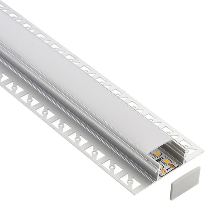 Perfil fabricado en aluminio de alta calidad ideal para iluminación de cualquier ambiente (baños, cocinas, pasillos, salones, etc) Se instala en obra entre el pladur, yeso, azulejos, etc. Dispone de aletas troqueladas que facilita la inserción del cemento u otro material para asegurar así un agarre perfecto a la pared.
