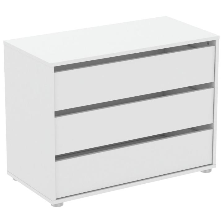 La Cajonera Blokty en blanco mate añade un aire moderno y fresco a cualquier estancia, siendo ideal para dormitorios, oficinas o áreas comunes. Su diseño minimalista logra integrarse con facilidad en diversos estilos decorativos, proporcionando una sensación de amplitud visual y luminosidad en el entorno. Este mueble se convierte en una pieza versátil que transforma y revitaliza el espacio, aportando un toque contemporáneo y ordenado a la decoración del hogar. Fabricada en melamina, la Cajonera Blokty ofrece durabilidad y un acabado atractivo. Con tres cajones amplios, brinda un excelente espacio de almacenamiento para ropa, documentos u objetos personales, asegurando un entorno ordenado. Sus medidas de 79,6x58,1 cm permiten optimizar espacios, haciéndola ideal para cualquier habitación. La estructura robusta facilita su montaje y añade estabilidad. No esperes más para simplificar y organizar tu espacio con esta cajonera eficiente. Medidas: Ancho:79,6 cm, Alto:58,1cm , Profundidad:39,6 cm. Se trata de mobiliario con kit de montaje, que incluye manual de instrucciones y tornillería.No se garantizan envíos a Menorca, Ibiza y Formentera. Las entregas se realizan a pie de calle