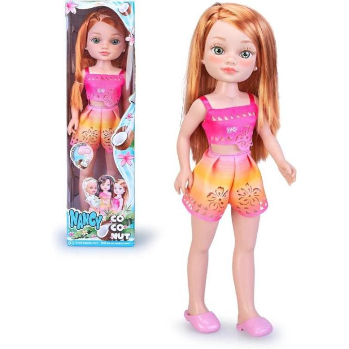 Desde su vibrante cabello hasta su vestido lleno de estilo y su aroma a coco, Nancy Coconut está diseñada para inspirar horas de juego; es óptima para recrear el espíritu vacacional y vivir aventuras en un entorno tropical lleno de magia