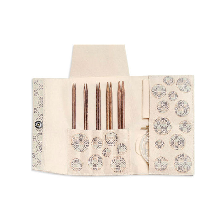 PONY - 49156 Estuche de agujas circular intercambiable de 3 maderas de 14cm con 5 agujas de los tamaños 3, 3,50, 4, 5 y 6,00mm con 4 cables ( 1 cable 60cm, 2 cables 80cm, 1 cable 100cm con ajuste Glydon)