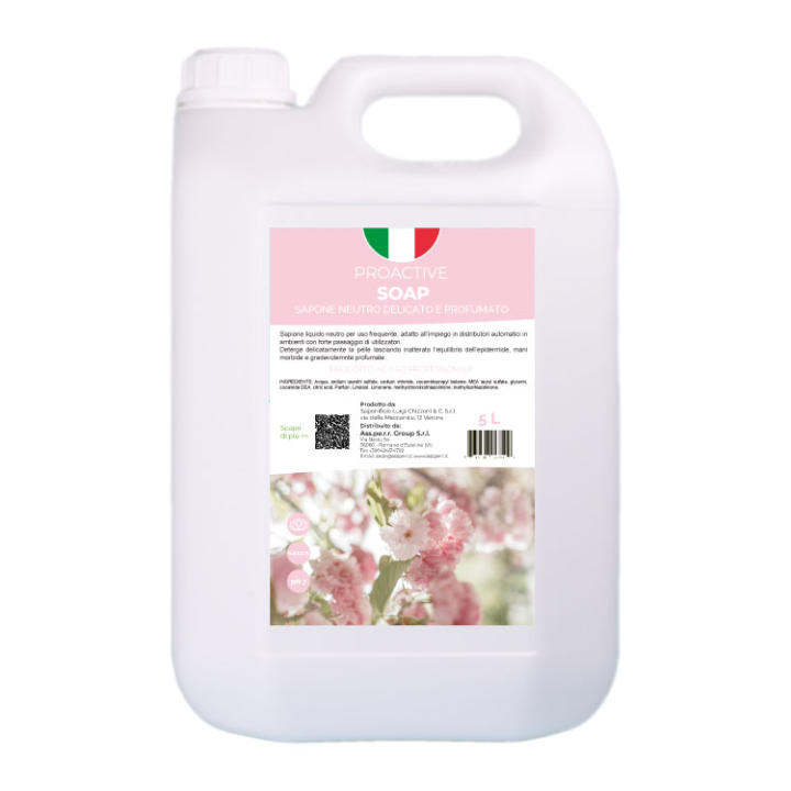 Companies looking for an effective and safe solution for cleaning their employees' hands can rely on ProActive Soap. Thanks to its neutral and delicate formula, this 5-liter liquid soap is the ideal choice for promoting hygiene and well-being in the workplace, ensuring effective cleaning without compromising skin health