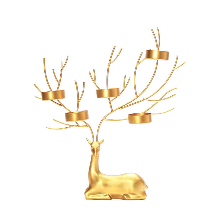 DISEÑO LIVELIKE - Con un color encantador y una postura realista, el portavelas de reno aporta una sensación de lujo y belleza a cualquier escena. El diseño de las 5 velas de té hace que este portavelas dorado se diferencie de otros portavelas, siendo más llamativo como centro de mesa.