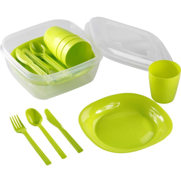 Organiza tus comidas al aire libre con este completo set de vajilla reutilizable HEGA, diseñado para 4 personas. Ideal para camping, picnic, playa o caravana. Fabricado en España con materiales seguros para alimentos y respetuosos con el medio ambiente.