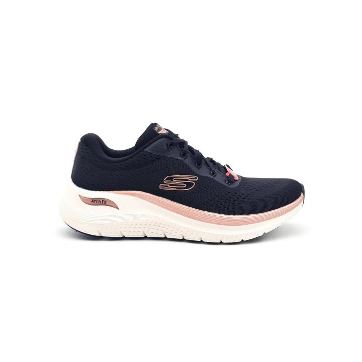 Deportiva para mujer de la marca Skechers en color negro, con detalles en contraste que le dan un toque distintivo al diseño e ideal para ofrecer comodidad y estilo en cada paso. Fabricada en malla sintética de primera calidad, con forro interior textil que favorece la transpiración del pie. Cierre mediante cordones en el empeine, para asegurar una buena sujección del pie. Plantilla Skechers Air-Cooled Memory Foam® que se adapta a la forma de tu pie, brindándote una sensación de suavidad y amortiguación durante todo el día. Tecnología Arch Fit, que proporciona una altura adicional y apoyo al arco del pié.