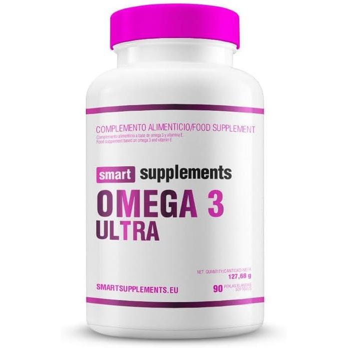 SMART SUPPLEMENTS - Omega 3 Ultra - 90 Softgel. Este producto contiene Aceite de Pescado Omega 3, EPA y DHA con Vitamina E. Reduce triglicéridos y ayuda al bienestar cardiovascular. Propiedades antiinflamatorias incluidas.