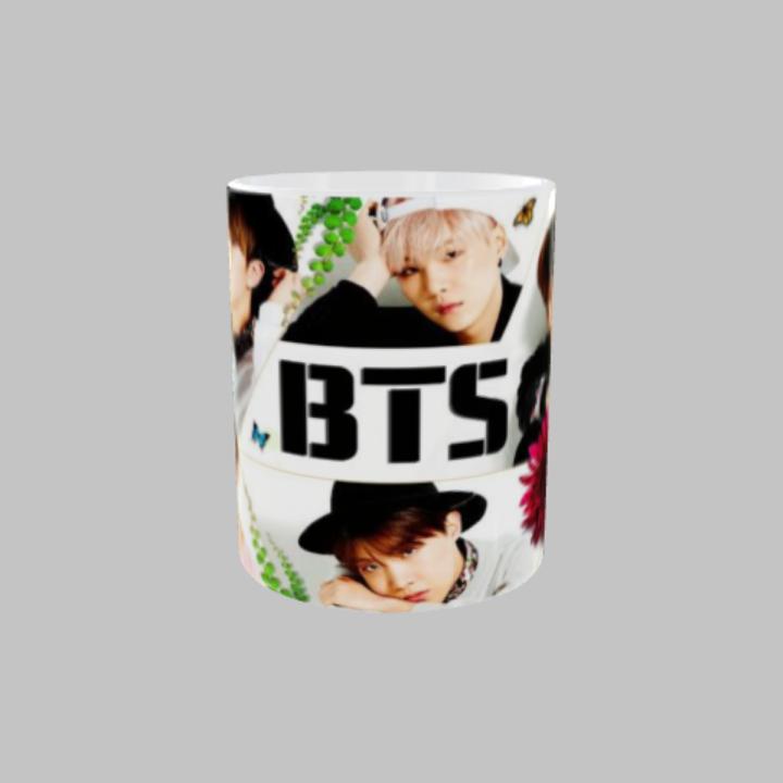 🎶 Lleva a tus idols favoritos a cada desayuno Taza de cerámica con diseño del grupo BTS, perfecta para cualquier fan del K-Pop y miembro del ARMY. Un diseño colorido y actual que rinde homenaje a uno de los grupos más influyentes de la música mundial.