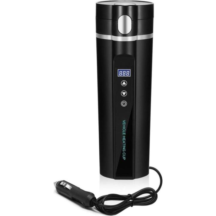 ¿Quieres disfrutar de una bebida caliente mientras viajas o durante tus vacaciones pero no te apetece cargar con una gran tetera o cafetera? ¡Entonces elige nuestro hervidor de viaje! Pequeño y eficiente, perfecto para todas tus aventuras.Pros y contras+ Control de temperatura inteligente+ Seguridad+ A prueba de fugas- No es necesario hervir grandes cantidades de agua.PresupuestoColor: NegroPotencia: 90WVoltaje: 12 V/24 VContenido: 450 mlMaterial: acero inoxidable¿Por qué es tan popular?Control inteligente de temperaturaPuede ajustar la temperatura de calentamiento del calentador del automóvil según sus preferencias. ¡De esta manera podrás disfrutar de bebidas perfectamente calentadas en todo momento!A prueba de fugasNuestras tazas están hechas de plástico apto para alimentos para bebés en el exterior y tecnología de aislamiento al vacío médico 304 en el interior. Esto proporciona un excelente aislamiento, resistencia a la corrosión y ausencia de olores. Gracias a los materiales de alta calidad y seguros, siempre podrás disfrutar de agua caliente, café o leche para tu bebé en el coche.SeguridadNuestro hervidor para automóvil funciona con una toma de encendedor de cigarrillos estándar para evitar sobrecargas. La pantalla LCD muestra claramente la temperatura actual del agua. El diseño único de la tapa de la taza y el funcionamiento con un solo botón le permiten beber agua fácilmente con una mano. Disfrute de agua caliente, café y leche de forma rápida y sencilla, en cualquier momento y en cualquier lugar.Contenido:1 tetera