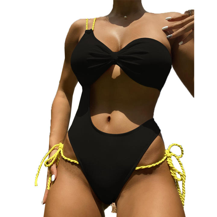 TK Conjunto de Bikini Bandeau de Cuello Halter Estilo Plano Ajuste Delgado Para Primavera/Verano 24
