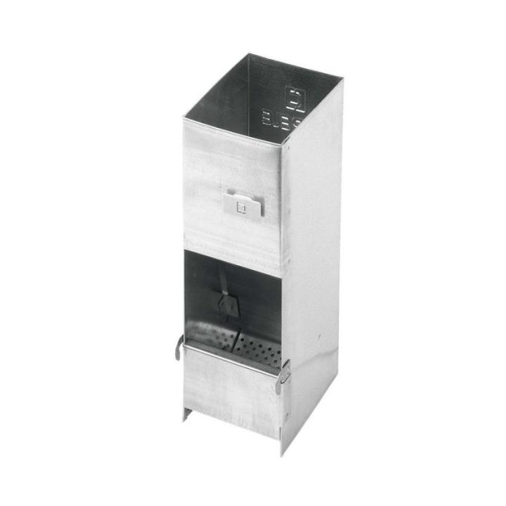 Comedero para conejos adaptable a cualquier tipo de jaula mediante ganchos metálicos en el exterior de la jaula, o mediante una presilla de plástico para instalarlo en el interior. Posee una abertura amplia para facilitar el llenado de pienso. Todos los bordes de la tolva llevan un plegado de seguridad para evitar cortes tanto en el conejo como en el operario.