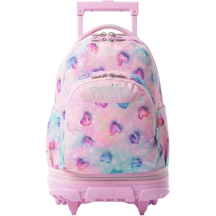 🎒 TOTTO Mochila Escolar con Ruedas Desmontables – Modelo Tiza | Estampado Shiny Heart Glitter | 26L | Porta PC 15.4” | Manija Telescópica | Espaldar Ergonómico | Eco RPET