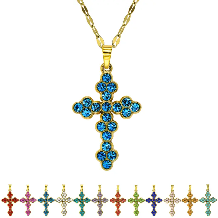 AVANCY Cruz Madero Cristo en Acero 316 L Inoxidable Chapada en Oro 18 Kilates.