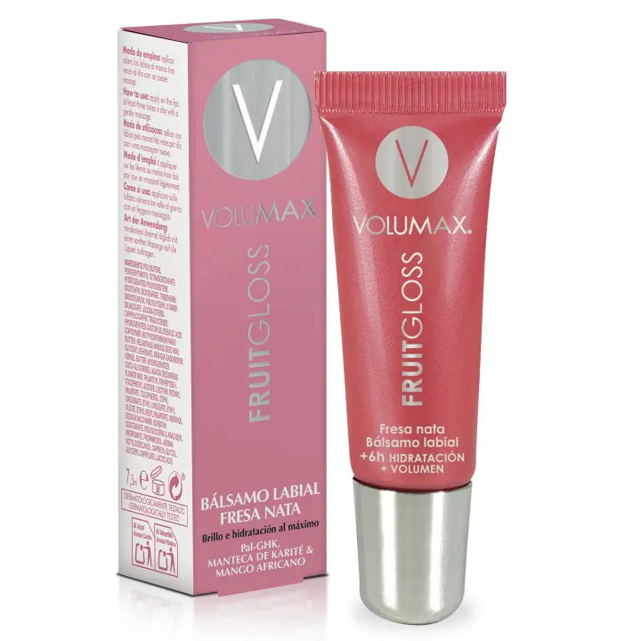 Volumax Fruitgloss Gloss de Labios de Sabor Intenso y Duradero | Óptima Hidratación, Brillo, Confort y Volumen | Sabor Fresa Nata, Fresa Intensa y Canela | Sin Color | 7.5 ml