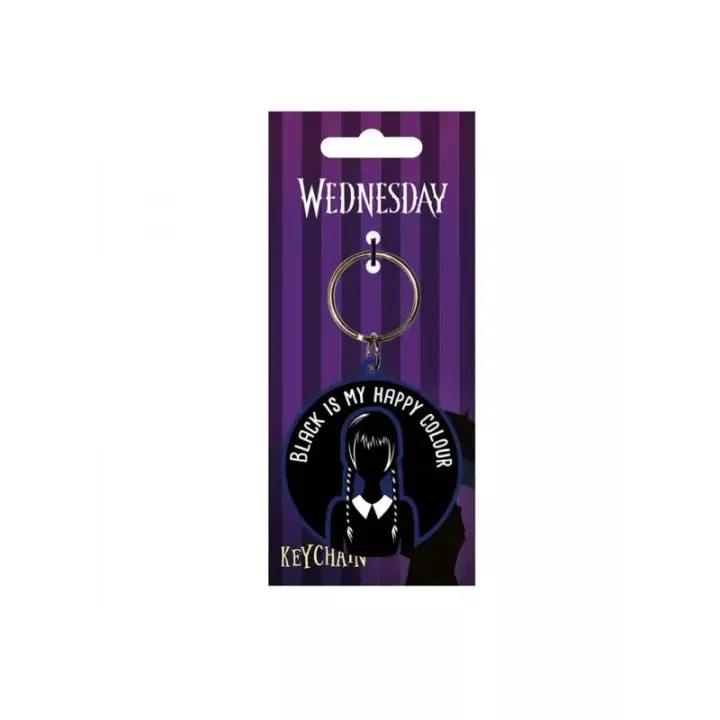PYRAMID - WEDNESDAY - Llavero Black is my happy - ADDAMS - Material de caucho de calidad - Ideal para fans del humor oscuro y la onda Addams! ¿Listos para añadir un toque de estilo Wednesday a vuestro día a día? - Regalo original para amigos y familiares